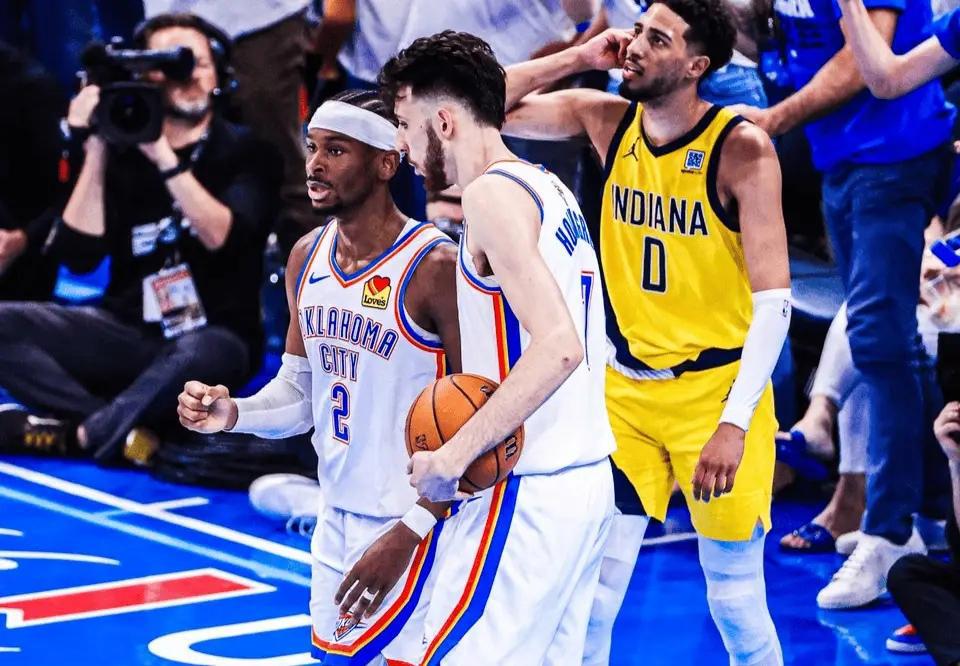 第一,大家最关心的哨子问题。抛开上一场G4的诸多争议不谈,这一场天王山,其实裁判判罚还是非常公正,两边的罚球对比,步行者30罚24中,雷霆32罚26中,两边都给照顾到位了,谁也不要说谁,当然了,SGA依然是全场罚球最多的球员,他一个人就14罚13中。第二,雷霆双核爆种了。这场比赛,雷霆唯二两个全明星球员,其中亚历山大得到31分10助攻4盖帽2抢断,攻守兼备,今年季后赛他已经15次单场30+,自09年科比之后最多。每当步行者开始追分时,就由亚历山大拉出来单打,创造投篮空间,完成终结,步行者一点办法都没有。